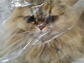 親の顔より見たBOX in トラちゃん。2019年2月22日は、水切りカゴの中にいました。