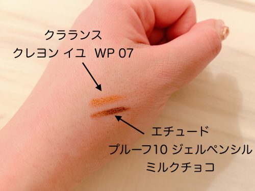 これ以外で、脱・黒アイラインしたい方にオススメなのが、エチュードハウスの「プルーフ10 ジェルペンシル」(¥750)ミルクチョコというカラー。クラランスのオレンジに似た色を探していた時に見つけた色で、一見ブラウンに見えるのですが、引いてみるとオレンジブラウンっぽいかわいい色味。