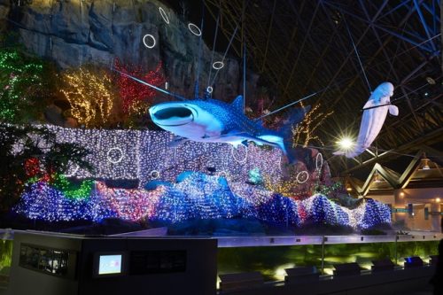 「スーパーイワシナイトイリュージョン」は、国内最多となる5万尾のイワシの群れが泳ぐ大水槽を使ったアトラクション。第1弾としては、クリスマスバージョンが用意されています。