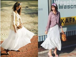 人気のニットスカートにブラウスを合わせる甘めコーデも、広がりすぎないロング丈&くすみパステルのスカートなら大人かわいい印象に。ブラウスをINしてコンサバに着るのもかわいいけど、チュニック丈のブラウスをOUTさせるとおしゃれっぽい女らしさがアピれます♡