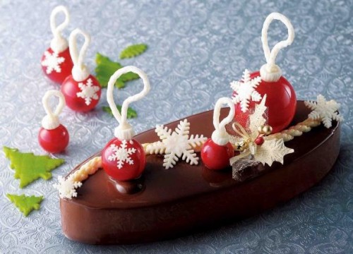 ヴァニラ風味のマスカルポーネクリーム、苺、サクサクの層をアレンジして情熱的なブッシュ ド ノエルに仕上がっています。