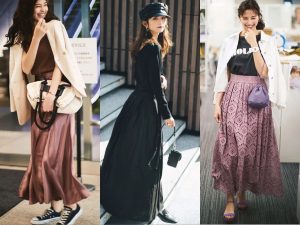 スカートを合わせる白ニットの着こなし