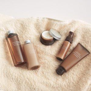 超軟水の天然水を使っているスキンケアのシリーズは、肌になじむと大好評! 10種の天然植物成分と、5種のうるおい機能成分配合で、しっとり透明感のある肌へ導いてくれます。