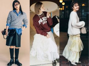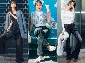 「黒」は定番のカラーだからこそ、トレンドを意識した合わせ方が今っぽコーデに効果的。シックな黒は、トレンドのチュールやレースなど軽やかな素材で春らしく着こなすと印象が新鮮にシフトします。フェミニンなフリルや袖コンシャスなど、華やかなデザインも黒なら取り入れやすくておすすめです。