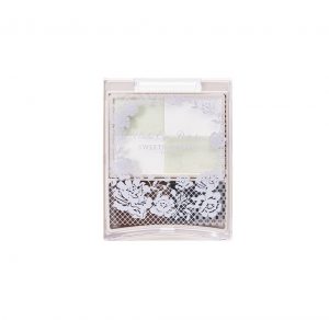 透け感のあるマットなホワイトと、ゴールド&シルバーのパールを配合したライトグリーンがセットになったパレット。単色で使っても、2色をくるりと混ぜて使ってもOK。アイメイクのにじみ予防にはオイルコントロール効果のあるホワイトを、くすみを払って透明感を出したい時はグリーンを。2色のブレンドをさっと塗ってから涙袋や下まぶたメイクをすれば、つけたてのキレイなメイクがずっと続きます。パウダーには乾燥から守る保湿成分入り。毛量たっぷりの使いやすい平筆も付いていて、持ち運びにも便利♪