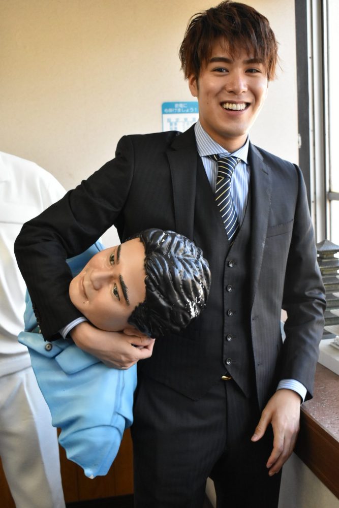 「肌の質感とか髭の感じもわかるし、瞳もうるうるしてるんですよね。リアルだな〜」と、あまりにも精巧な作りに感動しながらじっくり観察。
