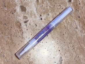 甘皮を押すプッシャーペンとオイルが一体化した便利アイテム! オイルがにじみでるプッシャーペンで甘皮を軽く押すことで、甘皮を傷つけずに除去。ペンの先端で甘皮をやさしく押し上げたら、面の部分でくるくると滑らせて薄皮を取り除きます。やりすぎるとささくれの原因になるので、1週間~10日に1度のケアがおすすめ。