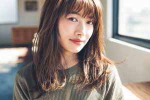 軽く巻くだけで簡単に仕上がるレイヤーヘア。低め位置にレイヤーを入れているので、軽く巻いて毛束をほぐすだけでふわっとした仕上がりが完成。