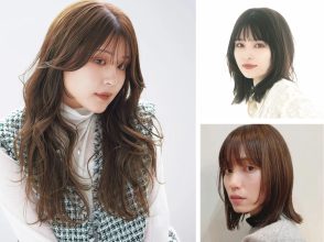 顔のサイドがカバーされるので、スッキリ見えます。重ためラインでも抜け感が出せる「重透けバング」にすると、さらに今っぽく!