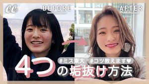 「大学に入学するタイミング!浪人生のとき、前髪を切るのがめんどくさくて伸ばしっぱなしにしてました」と明采さん。大学入学時にヘアとメイクを頑張ってあか抜けに成功したんだそう♡ かわいくないJK→ミス東大に?!こちらの記事&動画もあか抜けの参考になるので要チェックです!
