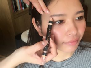 アイラインの高さまで眉尻を長めに描き足して、顔のパーツのバランスを外側に分散するとGood!