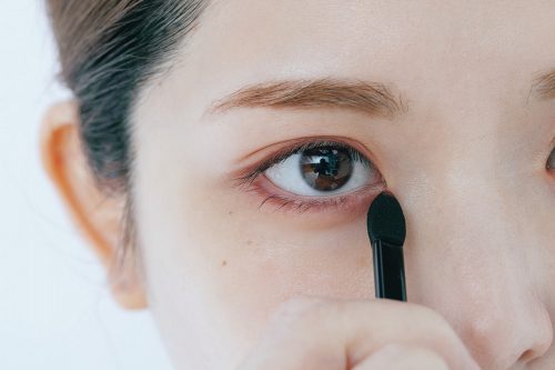 上下のまぶたを囲む赤みの面積を最大限大きくすると、上気したようなまぶたになりよりつやっぽく色っぽく。