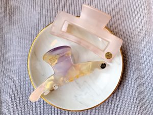 髪型は…へアクリップのまとめ髪で抜け感を♡