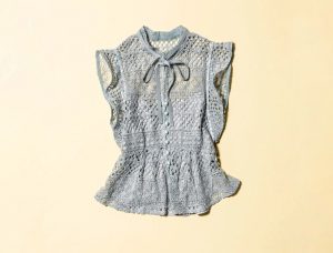 背中のビッグリボンがCUTEなワンピは、甘さ控えめのくすみブルーが推し。メリハリの効いたデザインでありながら、なめらかな肌触りと伸縮性など着心地のよさも優秀です。シワになりにくい素材で、おうちデートや在宅勤務にぴったりなのも高ポイント♡
