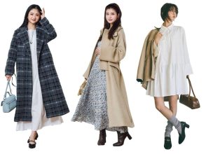 ベルト付きワンピース¥19,778(eimy istoire ルミネエスト新宿店)、バッグ¥31,900(PEACH<VIOLAd’ORO>)、靴¥4,980(LiLiRena)、イヤリング¥10,500(アビステ)、時計¥8,580(エイチエムエス archive ルミネエスト新宿店<KOMONO>)、リング[4本セット]¥1,650(Heartdance)