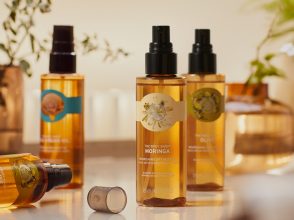 昨年リニューアルされた、顔筋マッサージ専用のクリーム。3段階に変わるテクスチャーで、なめらかに指を動かすことができます。洗い流し不要でふき取るだけでOK。べたつきもなく、わずか3分間でスッキリと小顔印象に。そんなクリームと、余分な油分や角質をすっきりと落としてハリ感のあるに肌に整えるふき取り化粧水、さらに人気のチークとハイライターをセットにした特別なキットで、サマールックを華やかに仕立ててくれます。