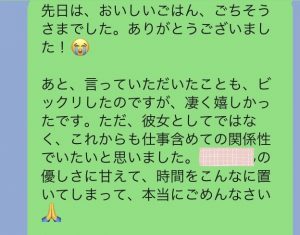 とはいえ、ソフレまがいの関係から結婚へと結びついたカップルもこの世に恐らく何組かはいるでしょうから、“結婚を前提とした真剣なソフレ”のオファーなら検討することとしましょう。