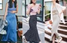 ミントベースに白ドットのスカートが、甘すぎない爽やかな雰囲気。そこにダークブラウンのニットを合わせれば、新鮮おしゃれなチョコミント配色に♡ 女っぽいマーメイドラインや抜け感のある白小物で洗練度を高めて。