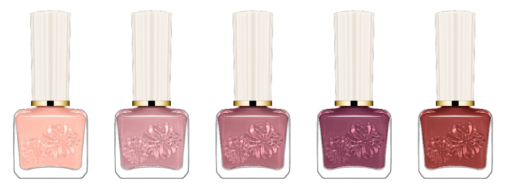 こちらは、溶け込むように肌に馴染むパールベージュの「ブリタニー」、オフィス用にもデート用にも使えるパールピンクの「ルイザ」、ほんのり赤みの効いた大人っぽいローズの「セレステ」の3色。どのカラーにも繊細パールが入っていて、まるでシェルのように上品な煌きを指先に宿します。