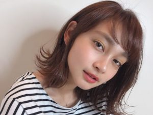オレンジベージュは、日本人の肌色と相性のいい、温かみのあるカラー。ボブスタイルとの相性もばっちりです。寒色系から、雰囲気を少しだけチェンジしたい方にもオススメ。