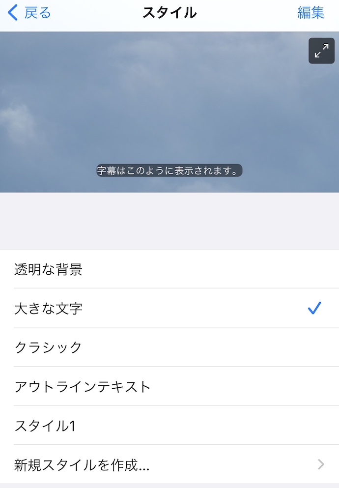 ⑤「スタイル」をタップ→お好みの字幕をチョイス