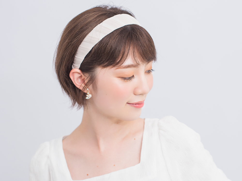 ルミネで買ったヘアカチューシャ。夏っぽい素材と白で軽やかなので、夏服との相性もバツグン。普段は髪を巻いたり、前髪も上げたりして変化を出しています。