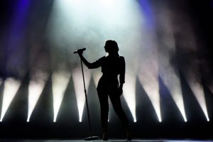• Vocalist,Singing,To,Microphone.,Singer,In,Silhouette.