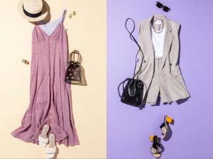 開放感のある夏らしいスタイリングにぴったり。クロスバックを見せるレイヤードコーデを楽しんで♡