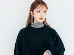 たっぷりと施されたギャザーがドラマティックなワンピースは、タンクレイヤード×ストライプでカジュアル感をプラス。ボリュームワンピをモノトーンでシュッと見せれば、鮮度の高い着こなしに。ガーリーになりすぎないローウエストも大人見えにひと役。レザーバッグやシルバーアクセを合わせて、程モードに着こなして。