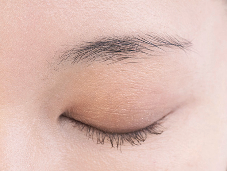 細すぎず太すぎず、眉頭から眉山までほぼ均一の太さにそろっているのも、ナチュラル美人眉の特徴のひとつ。すっぴん眉が細いor薄めのはかなげ眉さんは、ワックスで自眉よりもちょっとだけ骨太な枠組みを作ってから眉のセンターへパウダーを狙い撃ちして立体感をアップするのがポイント。最後のなじませ役には、赤みを帯びた眉マスカラをセレクト。暖色系カラーがもつ膨張効果で、毛量の少なさが目立たない眉が完成します!