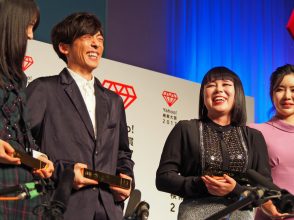 女優宣言した宮本茉由を舞台裏でキャッチ!「会見前に円陣組んでました」
