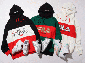 海外セレブも夢中♡ atmos pink別注 FILAビッグロゴフーディ&スニーカーが到着