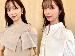 【写真4枚】肩チラトップスで華奢さをアピール!『めざましテレビ』お天気キャスター林佑香さんの毎日コーデ【7月22日分】