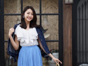 梅雨こそ爽やかさを!見た目も鮮やかイエローブラウス×ブルースカートでじめじめ知らず♪