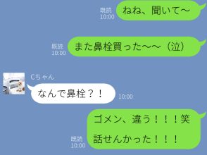「鼻栓買った〜(泣)」…突然どうした?思わず笑った誤字・誤変換LINE
