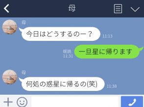 「一旦星に帰ります」…間違えた!母との爆笑誤字・誤変換LINE