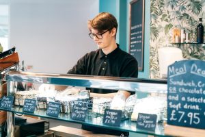 • A,Young,Waiter,Displays,The,Goods,In,A,Modern,Coffee