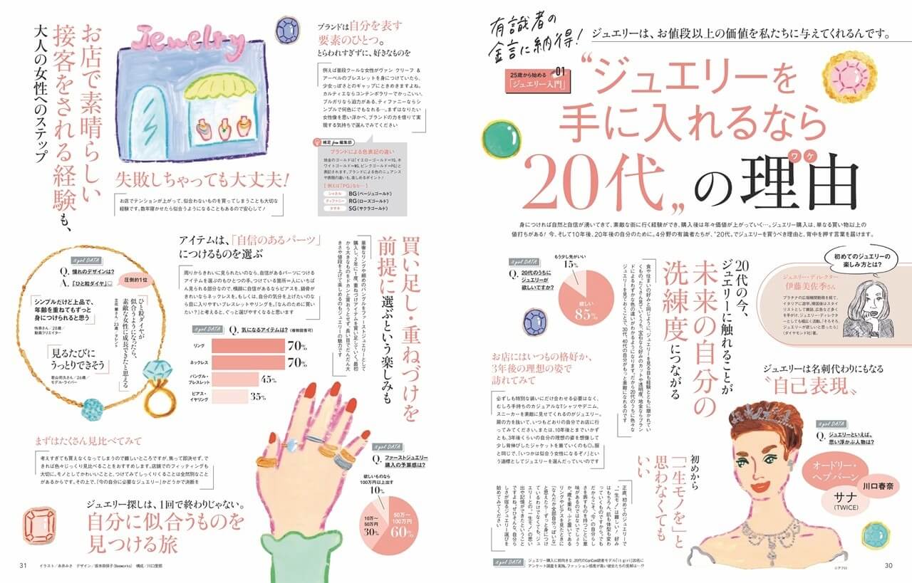 そこでCanCam12月号では、「25歳から始める“ジュエリー入門”」を大特集。身につけるだけで不思議とパワーをくれるジュエリーの魅力や、投資価値、初めての買い方まで…。全30ページの大ボリュームで、あなたのジュエリーデビューを応援します♡