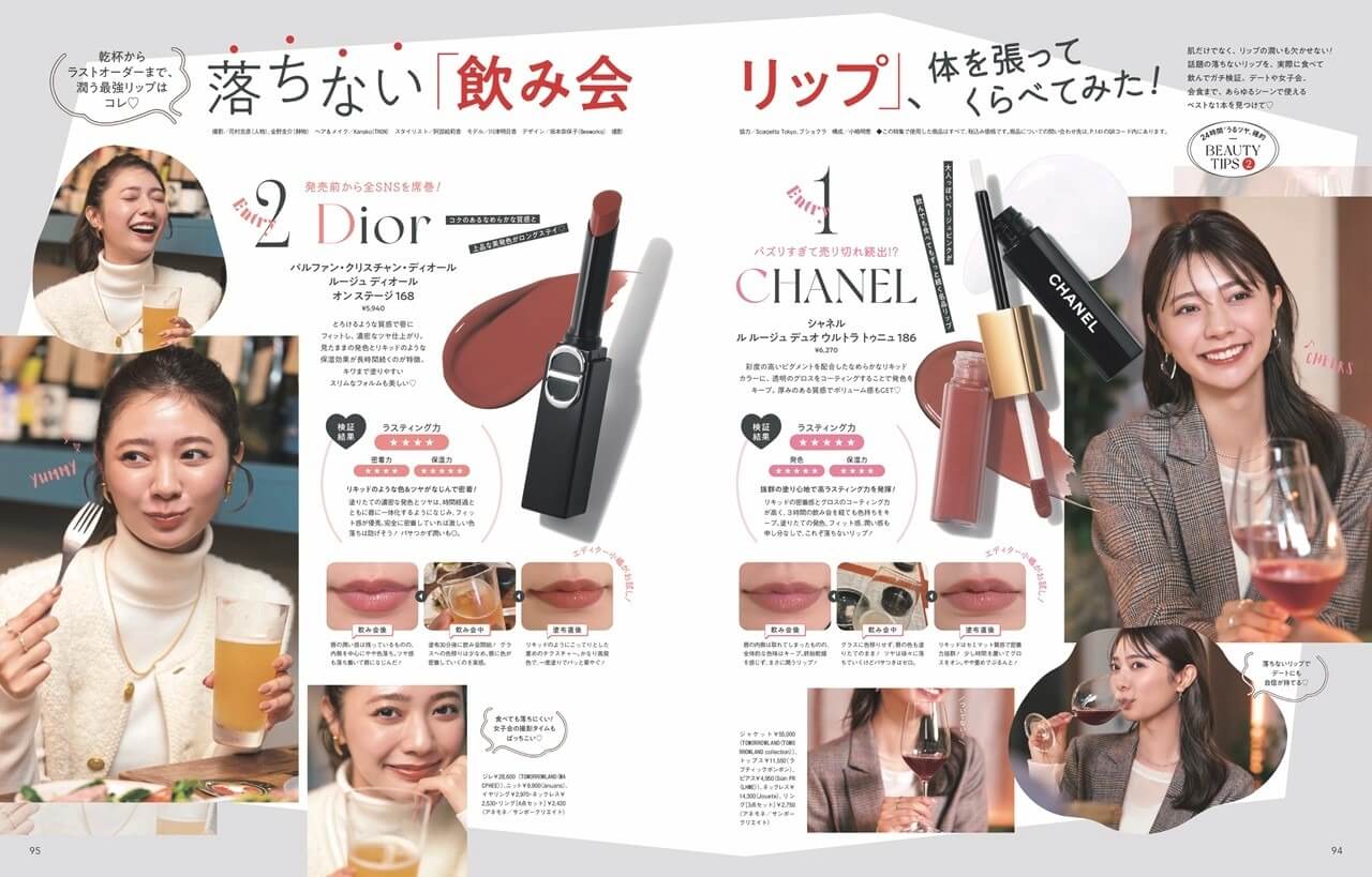 肌だけでなく、リップの潤いも欠かせない! そこで話題の落ちないリップを、実際に食べて飲んでガチ検証。デートや女子会、会食まで、あらゆるシーンで使えるベストな1本を見つけて♡