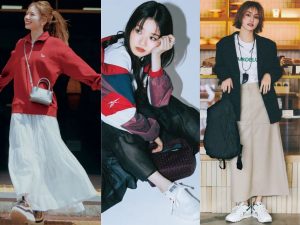 • 【ロングスカート×スニーカーコーデ36選】抜け感のある「フェミニンカジュアル」を伝授!