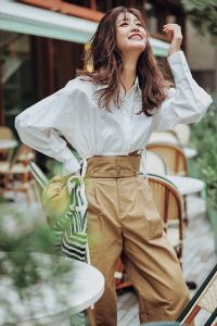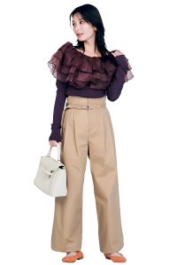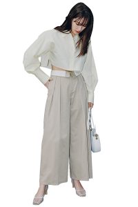 【ハイウエストパンツコーデ39選】脚長に見える「今っぽいトップスの合わせ方」も紹介