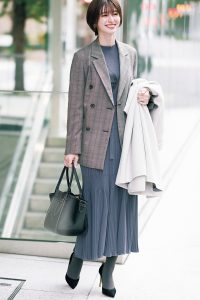 【写真7枚】アンサンブルのワンピースにユニクロのジャケットをON!『めざましテレビ』お天気キャスター・林佑香さんの今日のコーデ【10月24日分】