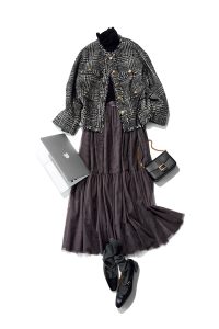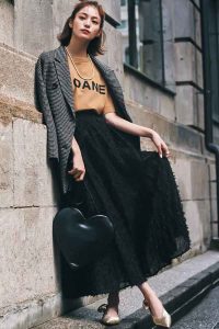 • 【黒スカートコーデ44選】チュールやラメ、ミニなど人気のデザイン&着こなし例