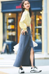【ロングスカート×スニーカーコーデ36選】抜け感のある「フェミニンカジュアル」を伝授!