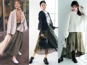 【カーキスカートコーデ12選】こなれ見えワントーンなど「失敗しない色合わせ」を指南!
