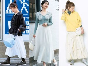 【白ロングスカートコーデ30選】太って見えない「シーン別ファッション」や着回し例も一気に!