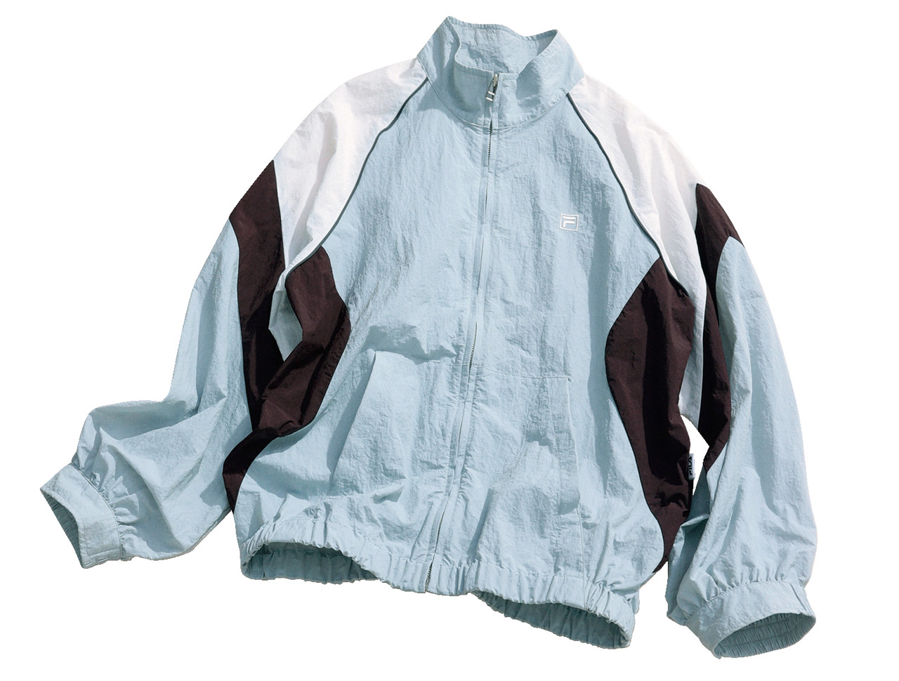 スポーツブランド「FILA」の別注ブルゾンは、パウダーブルーをメインにした絶妙配色が目を引く。ふんわりチュールスカートなどフェミニンなボトムと合わせると、キャラが引き立つ!