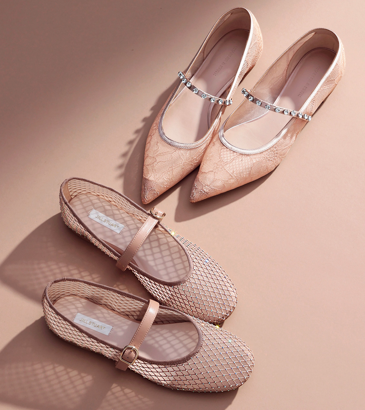 【下】メッシュ地のメリージェーンは、もはや定番。フェアリータイプは、ラインストーン付きで甘さをもうひと盛り!