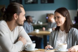 • Happy,Millennial,Couple,In,Love,Talking,Sitting,At,Coffee,House