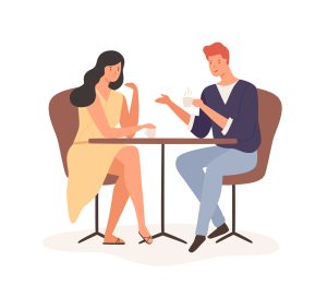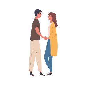 Man presenting flower bouquet to happy woman. Guy kneeling and giving floral bunch, romantic gift, surprise to girl valentine. Love couples date. Flat vector illustration isolated on white background